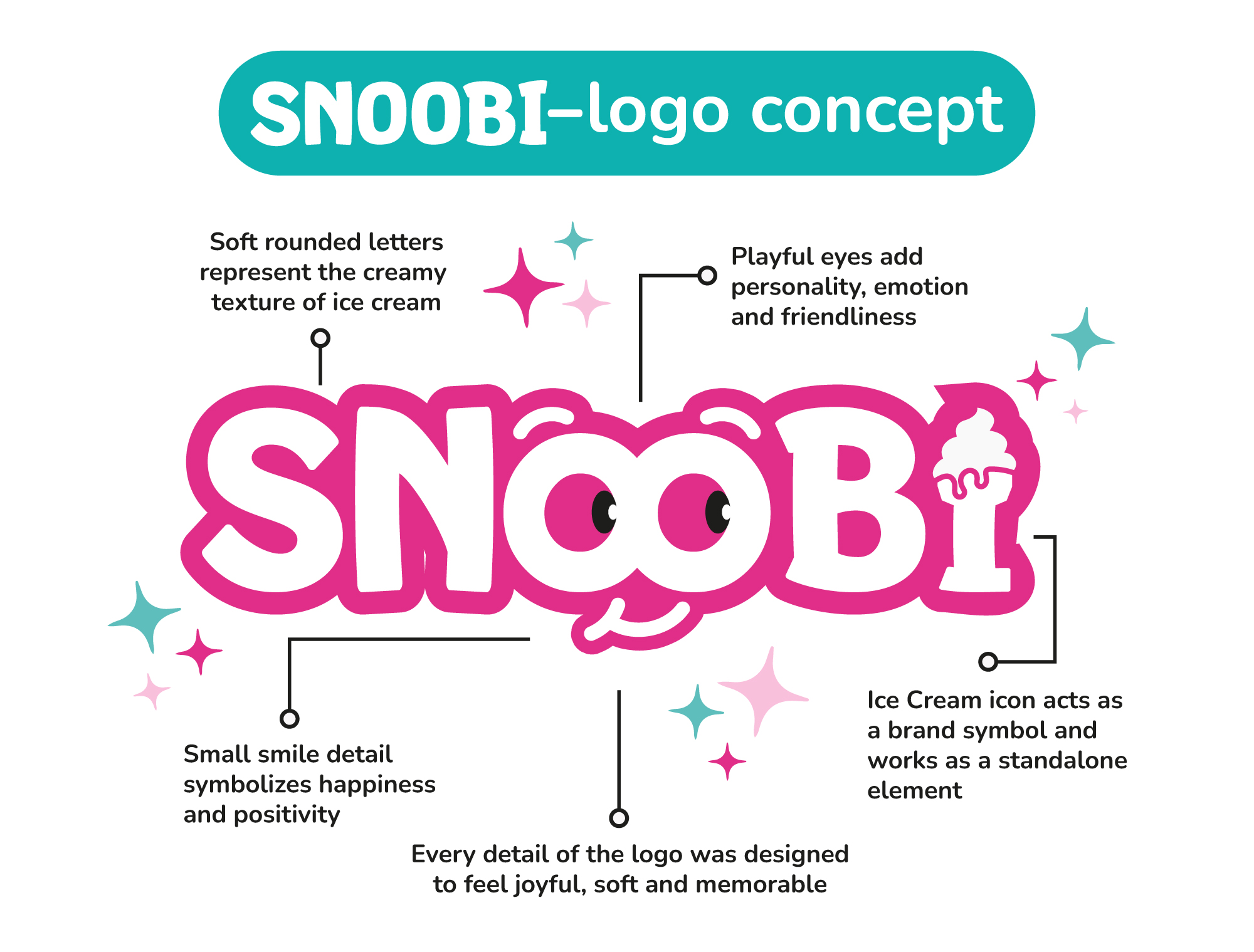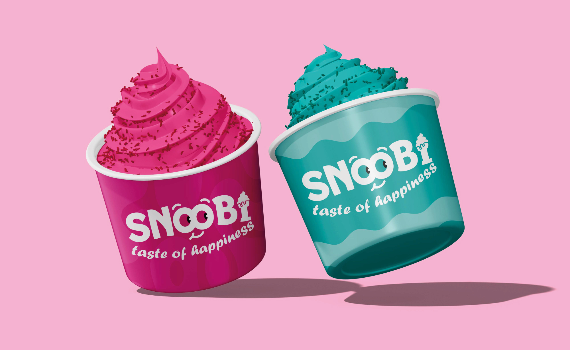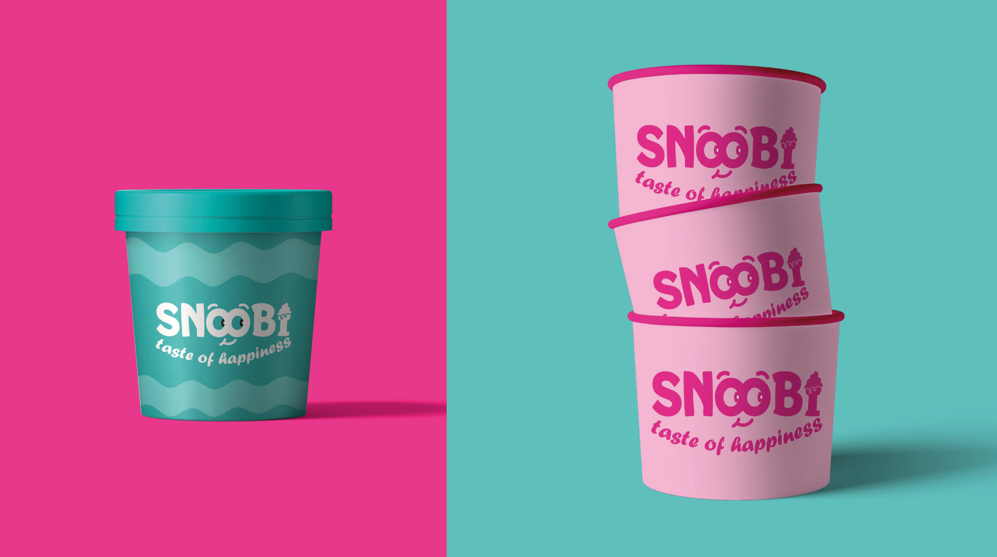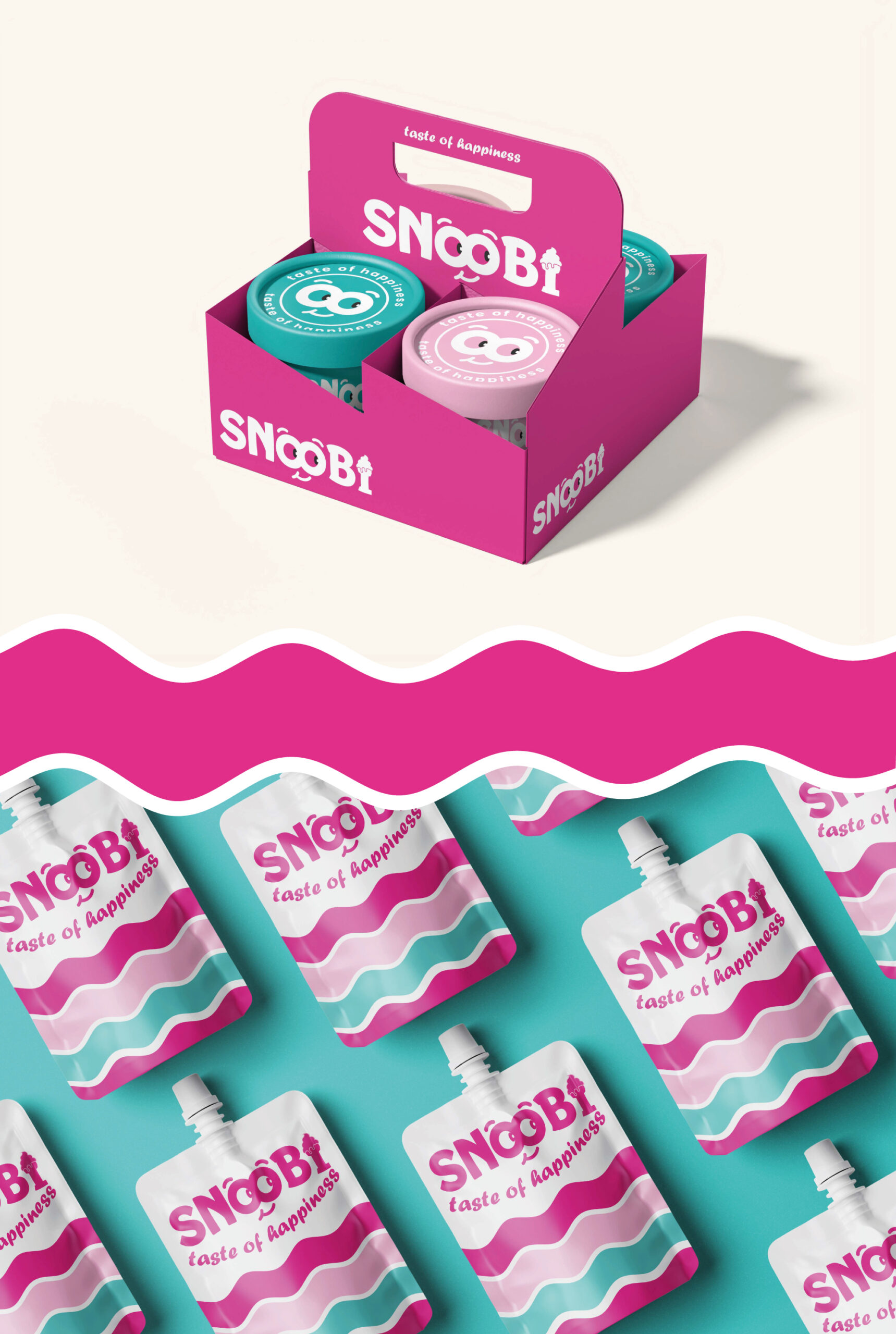 SNOOBI is a fun and colorful ice cream brand created to bring joy and sweetness to everyday moments. The visual identity combines bright pink and turquoise tones, soft shapes, and playful typography to create a cheerful and memorable brand experience.